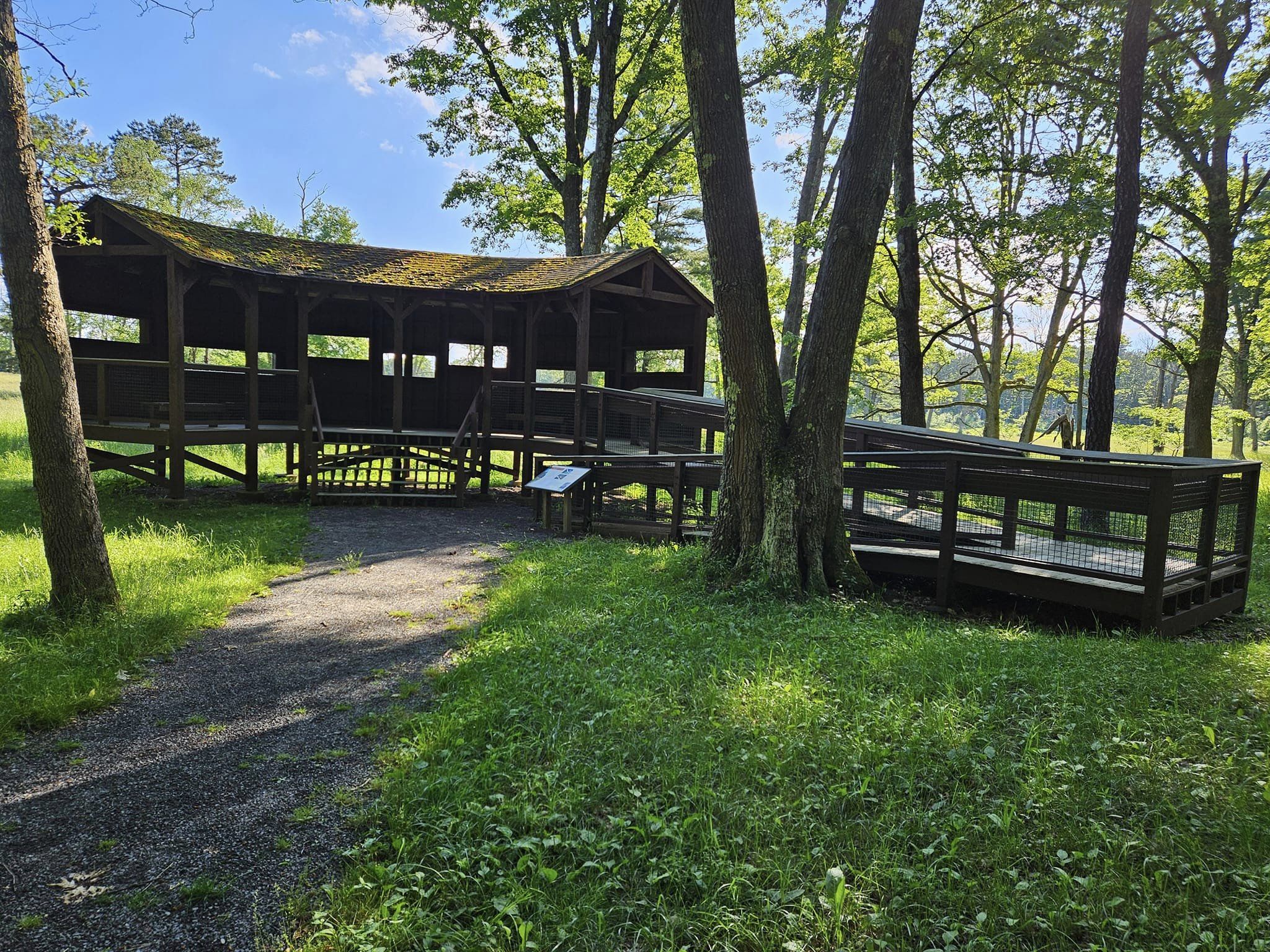 Handicap-accessible wildlife viewing blind overlooking food plots and openings that draw elk and other wildlife from the nearby woods.