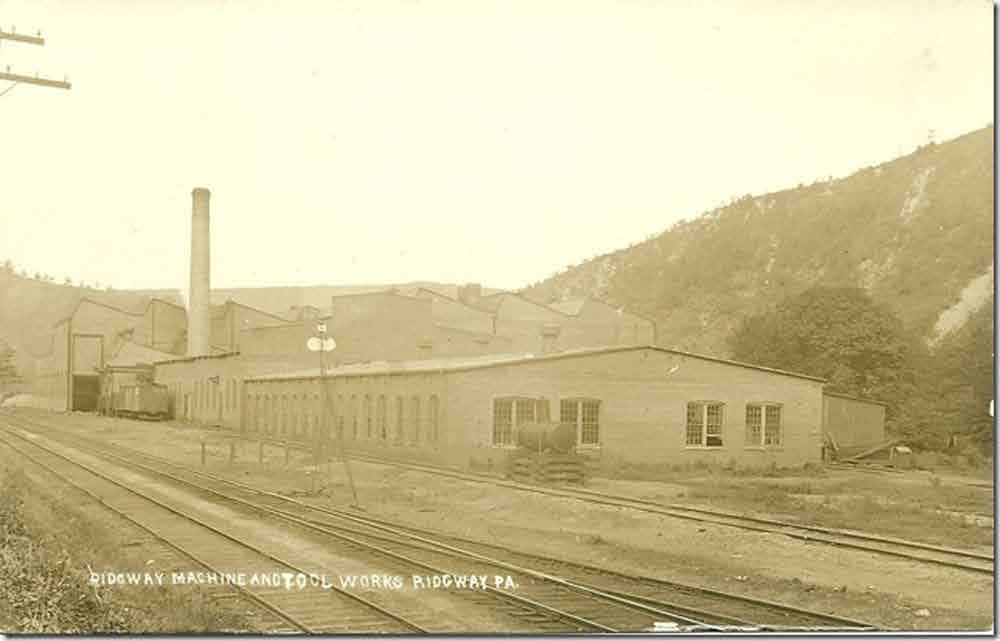 The Ridgway Machine Tool Company was established in 1893 with Harry R. Hyde as President and was noted for its manufacturing of lathes, planers, radial drills and boring mills. The official domestic business corporation paperwork was filed on January 1, 1902 and later became part of the Niles-Bement-Pond Company. The Ridgway Machine Tool Company was located on Front Street near the Pennsylvania Railroad and the site of Byron Ely’s sawmill on Elk Creek and later became the site of the Ridgway Color and Chemical (Ink Plant).